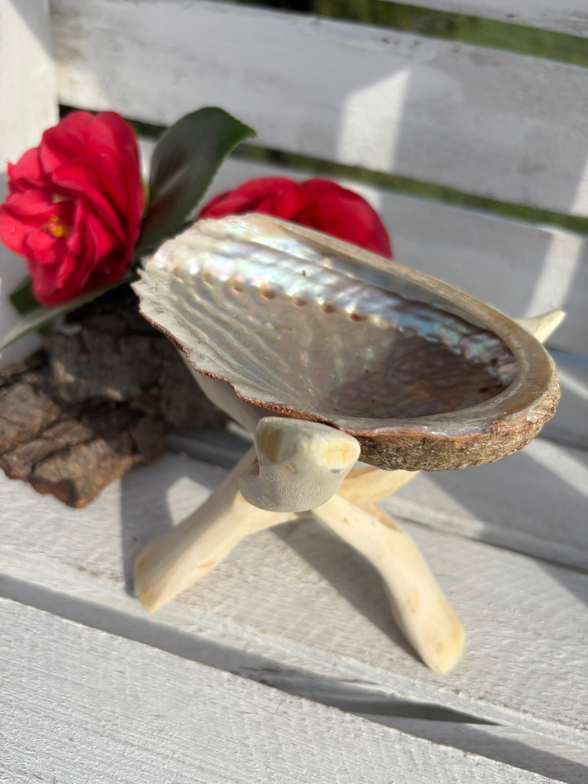 Deze edelsteenbol houder is geschikt voor bollen van 7 tot 15 cm. Ook geschikt om een abaloneschelp te dragen. Het is gemaakt van populierenhout.
